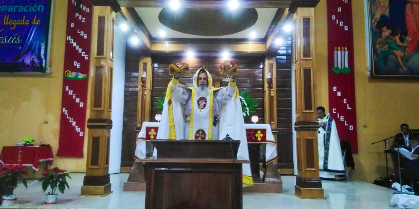 El jueves 30, por la tarde, el arzobispo presidió la celebración de la divina liturgia en la sede de la parroquia de la Epifanía, de Nucá, Santa Cruz Barillas. Concelebraron con él los padres Marcos y Pedro Martínez.