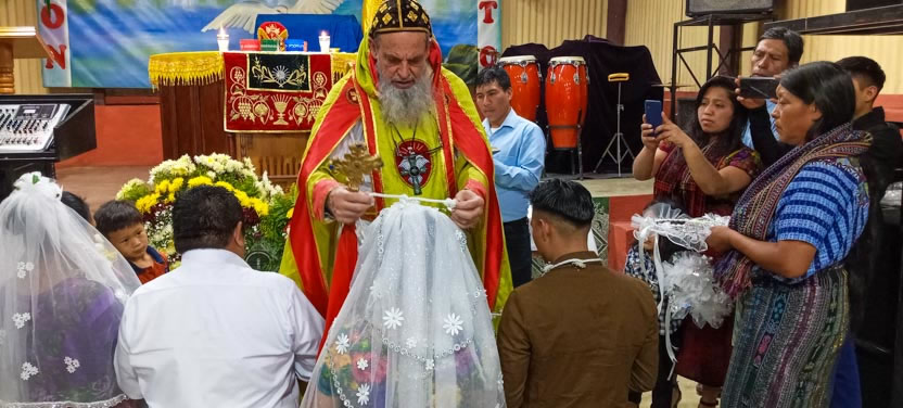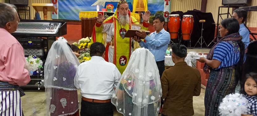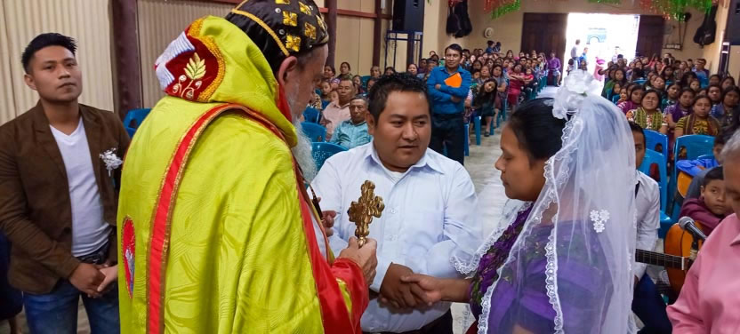 En el contecto de la visita del arzobispo a la comunidad Unción del Espíritu Santo de Santiago Atitlán, Sololá, se celebró el matrimonio entre Antonio y Fátima y entre Slvador y Micaela.