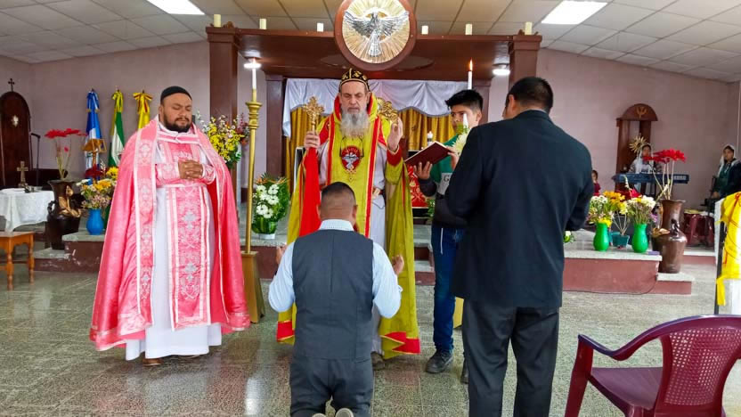 Al final de la celebración, el arzobispo presidió la celebración de la divina liturgia, la cual fue concelebrada por el Padre José Raúl, encargado pastoral de las comunidades de Huehuetenango.