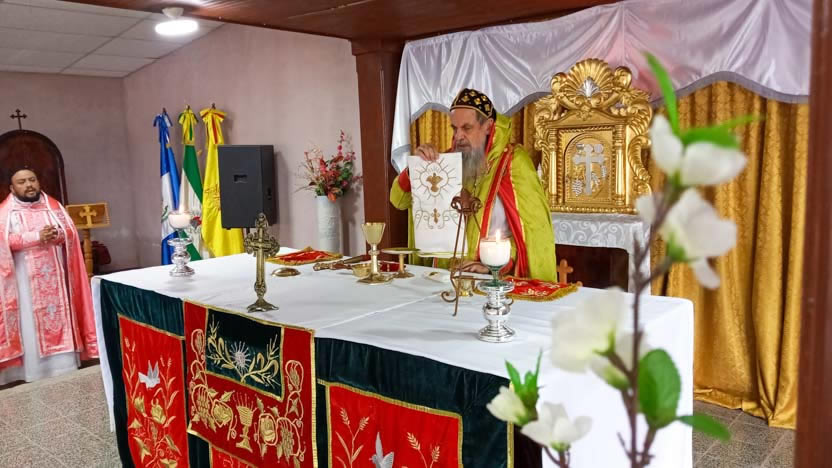 Finalmente, el arzobispo presidió la celebración de la divina liturgia con los hermanos de la comunidad de El Rodeo, animándolos a participar con devoción.