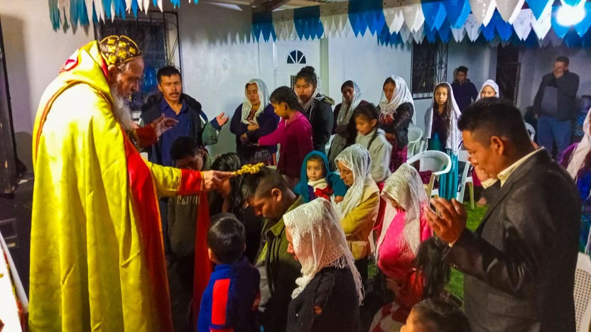 El sábado 5 de febrero, por la noche, al finalizar la celebración de la divina liturgia, el arzobispo invitó a los hijos y nietos de los hermanos Juan Juventino Reyes y Andrea Sontay, fundadores de la comunidad de El Rodeo, para orar por ellos.