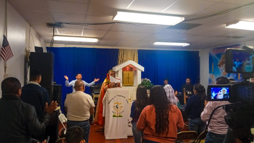 El jueves 10 de febrero, el arzobispo llegó hasta el lugar provisional en el que se reune la comunidad de El Pescador, de Los Ángeles, California.