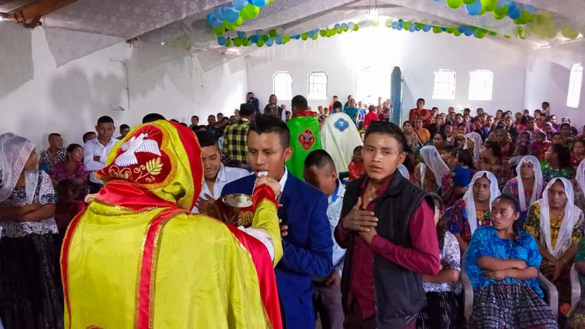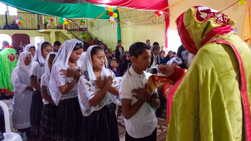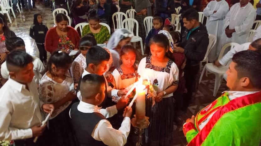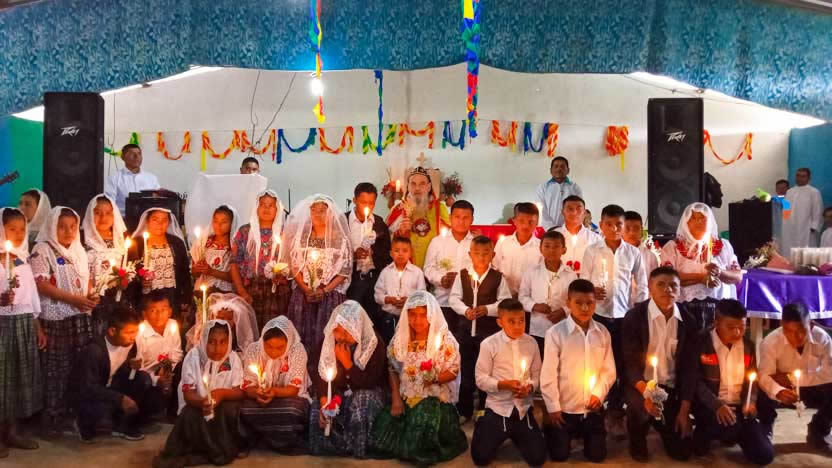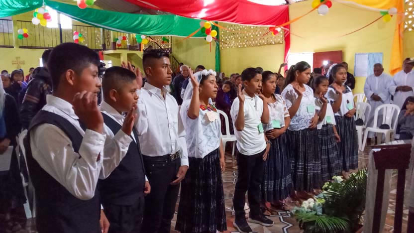 Dentro del marco de la visita a la comunidad San Pedro, se administró la confirmación de la crismación y el envío misionero a varios jóvenes de la comunidad. Se trata de Miguel Junior, de Luis, Macario, Rolando Ronaldo, Josselyn y Gabriela.