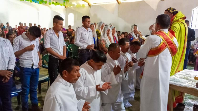 Dentro del marco de la visita pastoral, el arzobispo bendijo a algunos hermanos elegidos para ejercer el ministerio de distribución de la comunión en diferentes comunidades de Cahabón.
