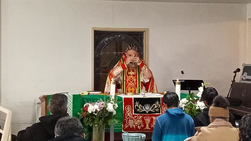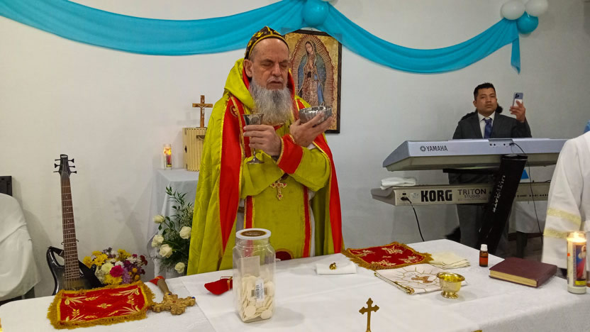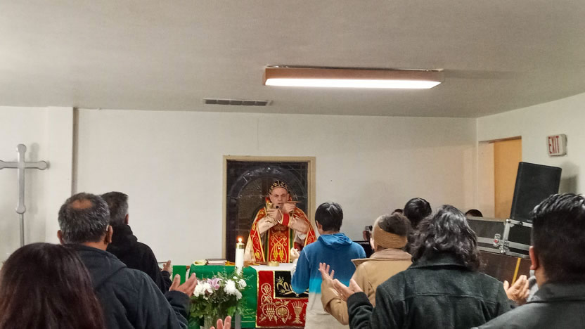 El jueves 24, en el marco de una visita muy breve que hizo el arzobispo a Los Angeles, California, visitó la comunidad de El Pescador, para celebrar los divinos misterios.