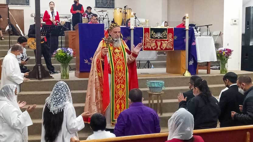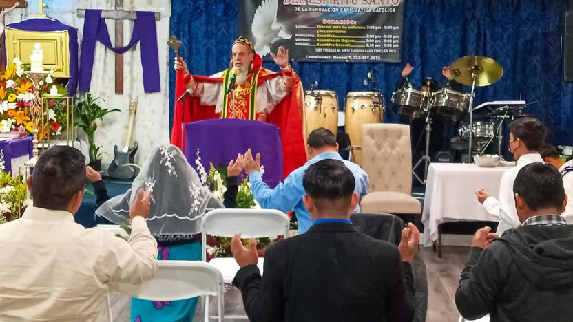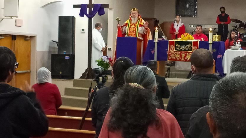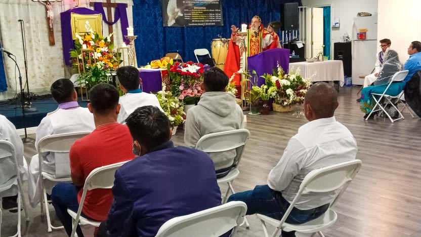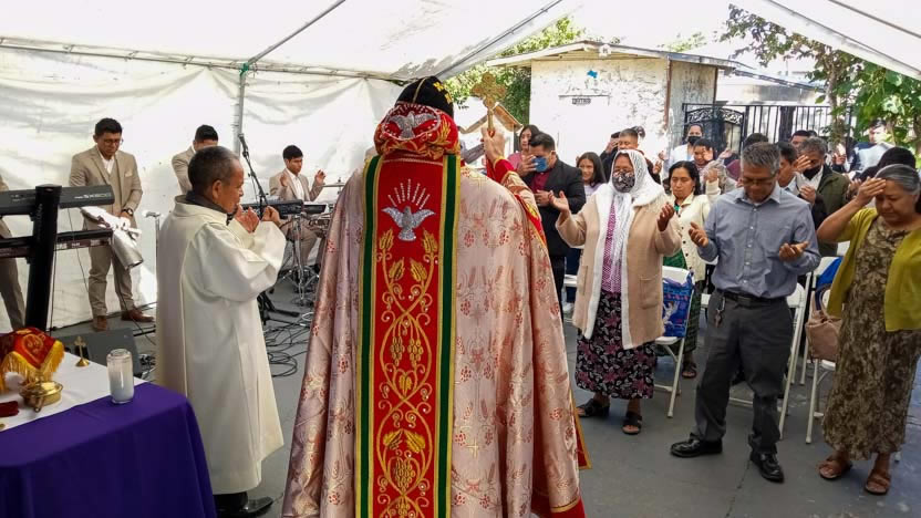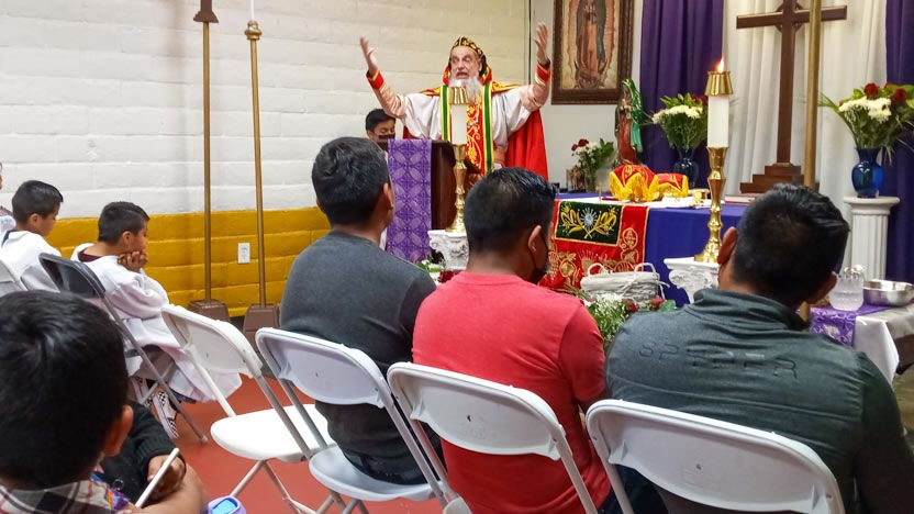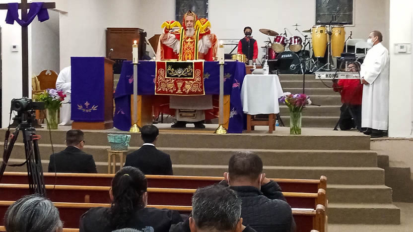 Seguidamente, el arzobispo presidió la celebración de la divina liturgia, para los hermanos presentes, de la comunidad Santa María de Guadalupe de Riverside.