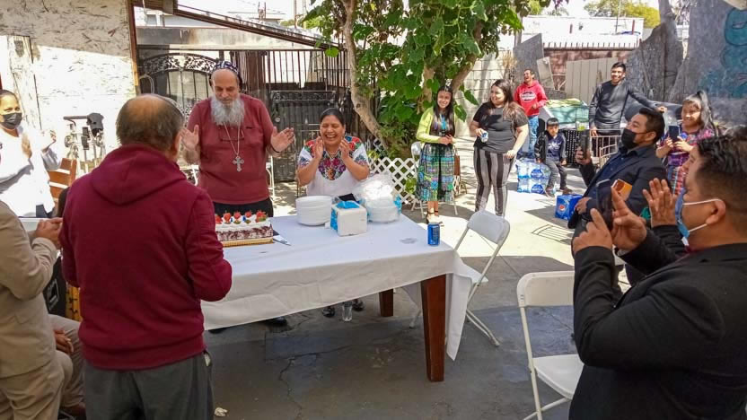 Terminada la actividad litúrgica y formativa, los hermanos quisieron agasajar al arzobispo por haber cumplido algún tiempo antes, setenta años de vida.
