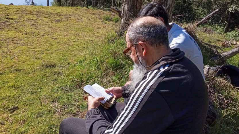 Después de una larga caminata en medio de la naturaleza y de la sequía característica de la época, se llegó a la cima. Poco después de llegar, se emprendió un tiempo de oración y, después de unos momentos de descanso, se emprendió el descenso y el retorno al seminario. |