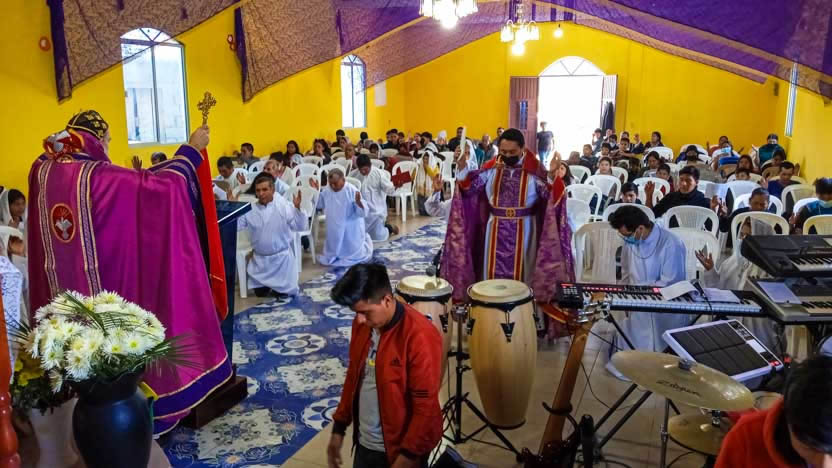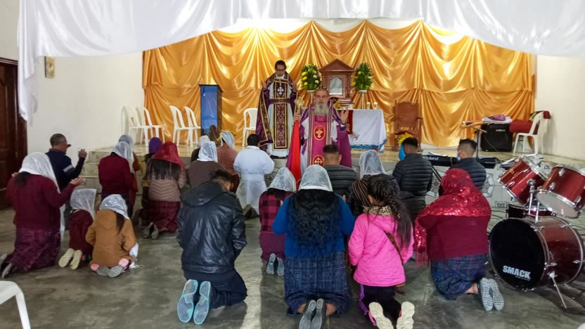 | 12: DIVINA LITURGIA CON EL PRESBITERIO Y FIELES DE LA VICARÍA DE HUEHUETENANGO, CENTRO FORMACIÓN JUMAJ. |