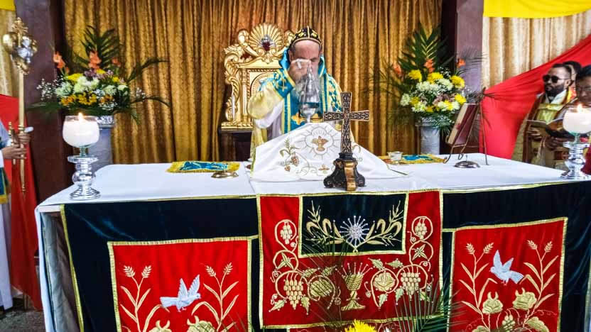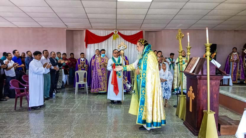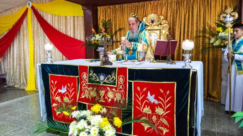 Seguidamente, el arzobispo presidió la celebración de la divina liturgia, la cual fue concelebrada por el Padre Santos Acosta, párroco local.