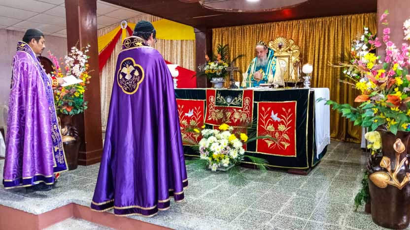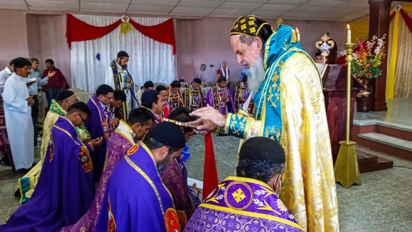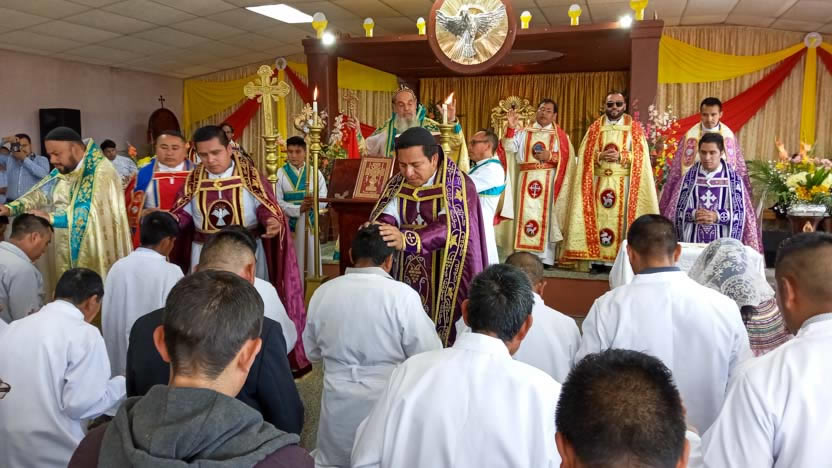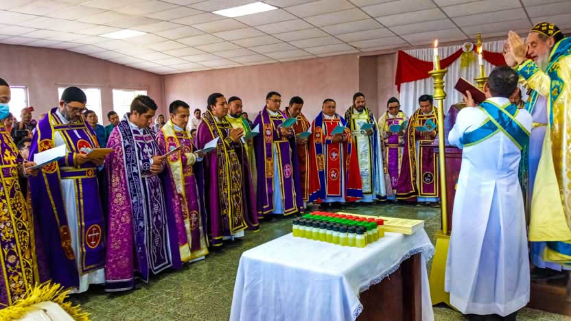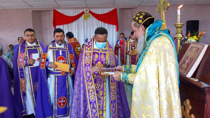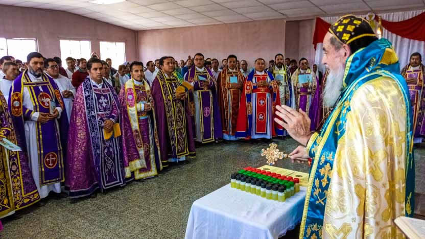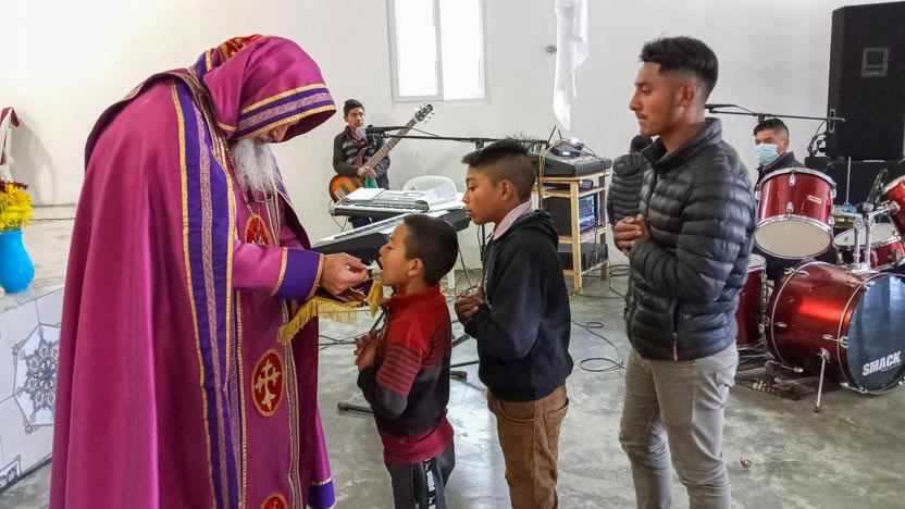 A continuación, el arzobispo presidió la celebración de la divina liturgia, la cual fue concelebrada por los diez y nueve presbíteros que ejercen el ministerio presbiteral en esta zona.