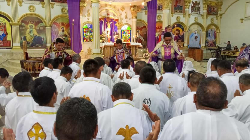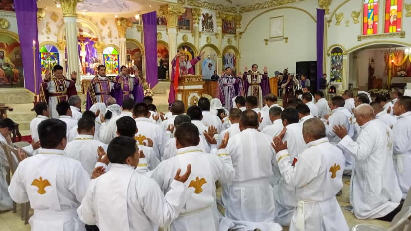 | 12: ORACIÓN DE LOS PRESBÍTEROS DE DE LOS FIELES DE HUEHUETENANGO POR EL ARZOBISPO, CENTRO FORMACIÓN JUMAJ. |