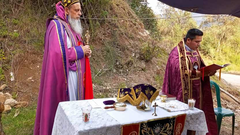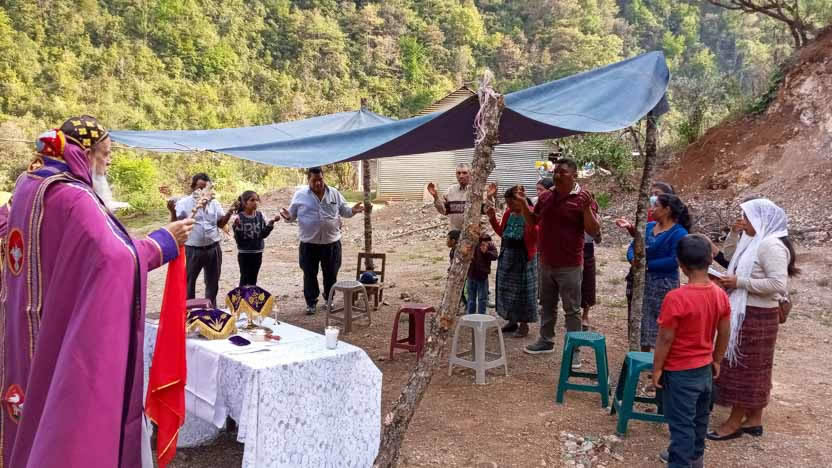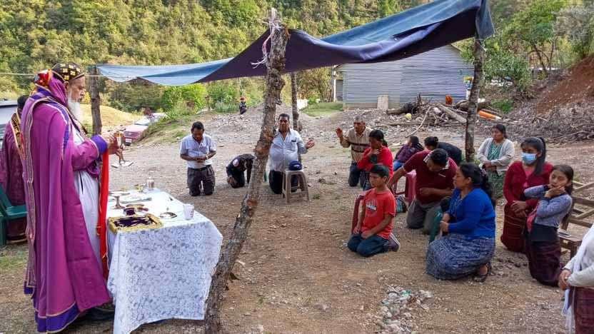 | 13: DIVINA LITURGIA EN EL ÁREA DE CONSTRUCCIÓN DEL NUEVO TEMPLO DE LA COMUNIDAD DE IXTIAPOC, SOLOMA. |