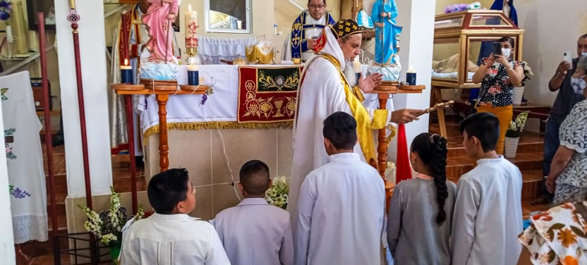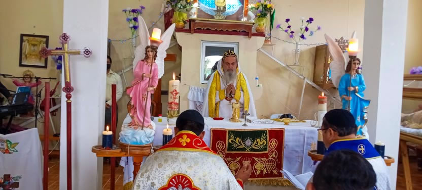 El arzobispo presidió la celebración de la divina liturgia, en el Centro Misionero Santa María de Guadalupe de Santa María Coyotepec, Oaxaca, con la participación de delegados de las comunidades de Oaxaca y concelebraron los padres José Juan y Wilber.
