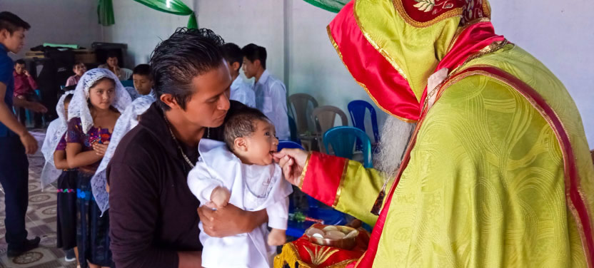 Dentro del marco de la visita a la comunidad de Tzununá, se administraron los sacramentos de la iniciación cristiana al niño Mynor, nieto del líder de la counidad, hermano Miguel.