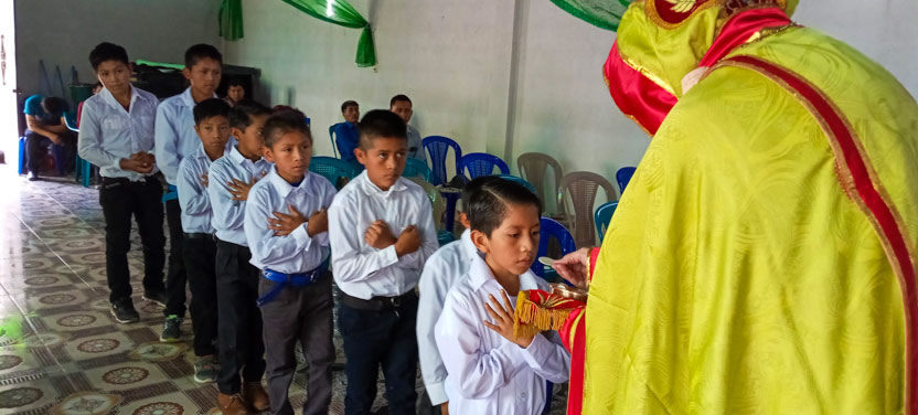 Dentro del marco de la celebración de la liturgia en la comunidad de Chuitzanchaj, se administraron los sacramentos de la iniciación cristiana a los niños Manuel y Danny.