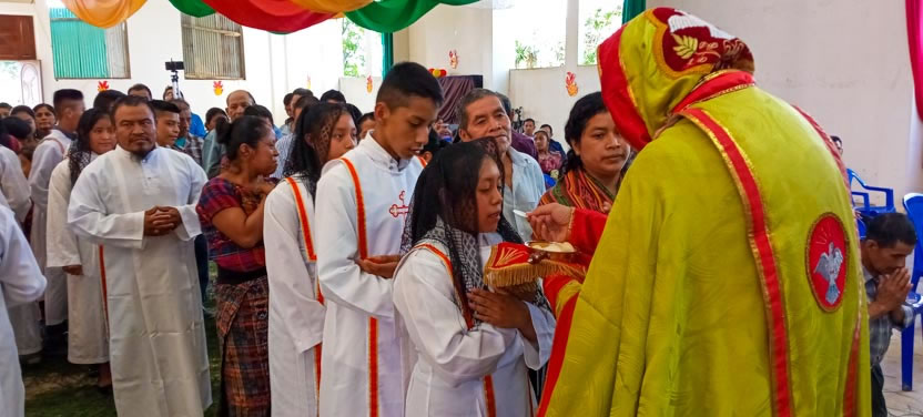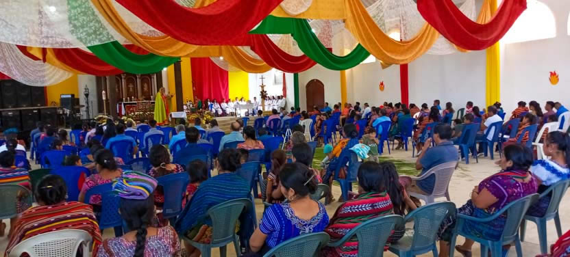 El domingo 12 de junio, por la tarde, el arzobispo llegó hasta la sede de la parroquia del Espíritu Santo, de Los Guantes, San Juan Sacatepéquez, Guatemala.