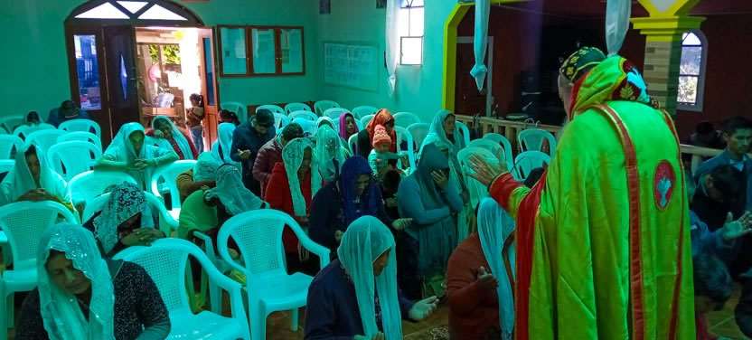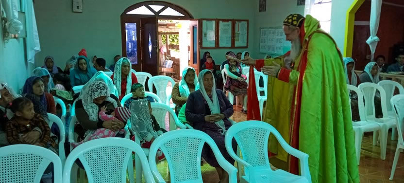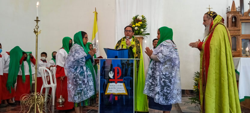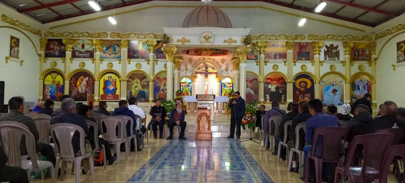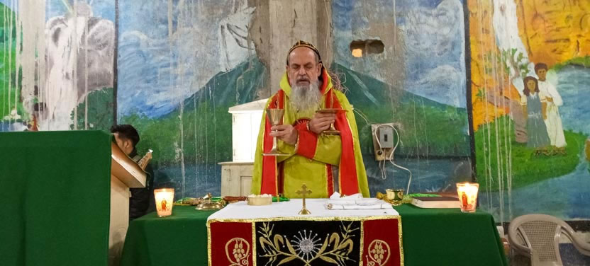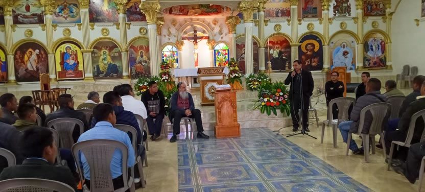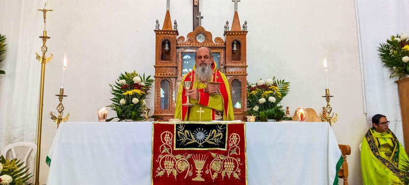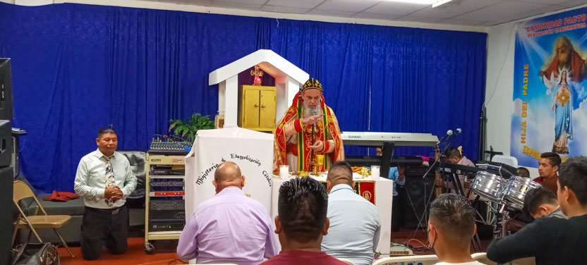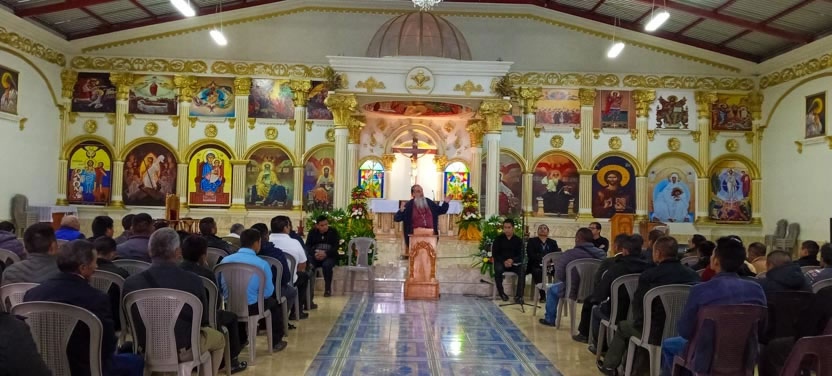 La visita a la comunidad Pacto Divino concluyó con la celebración de la divina liturgia para los miembros de la comunidad, que estaban participando con devoción.