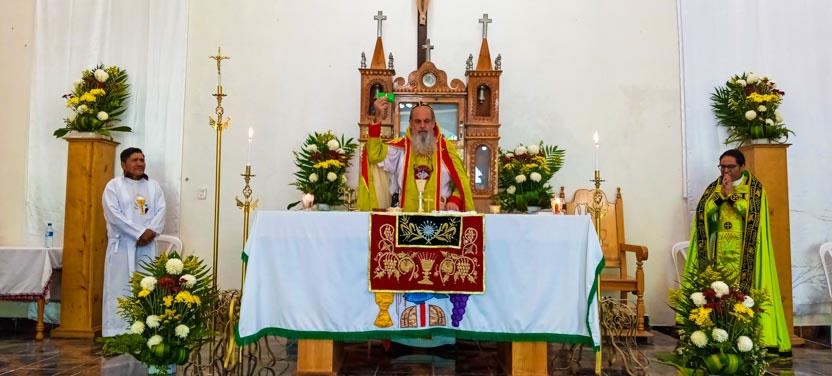 Finalmente, el arzobispo presidió la celebración de la divina liturgia en la comunidad de Belén de Santa Eulalia, la cual fue concelebrada por el padre Fredi Mux.
