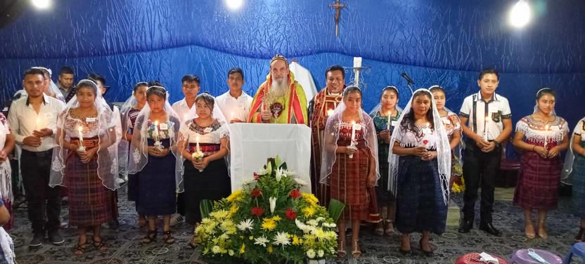 Finalmente, el arzobispo presidió la celebración de la divina liturgia en la comunidad de Manantial Carretera, Santa Cruz Barillas, habiendo concelebrado el padre Hugo, párroco local.