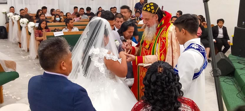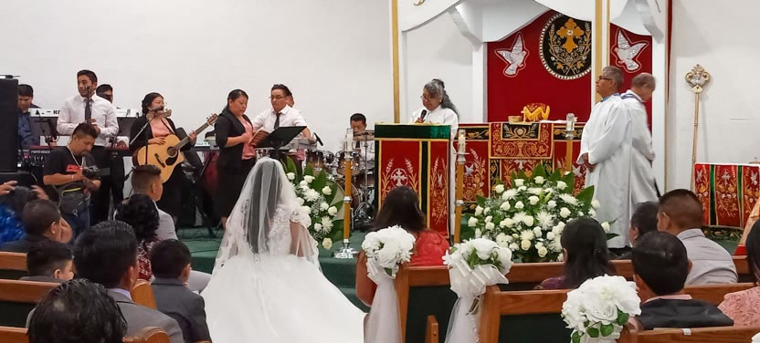 Dentro del marco de las celebraciones litúrgicas, se administró el sacramento del matrimonio a Juan y a Marylyn, quienes desde hacía largo tiempo habían venido preparándose.