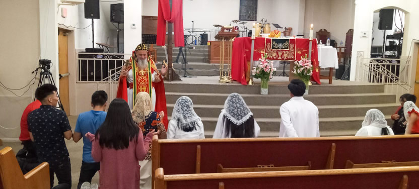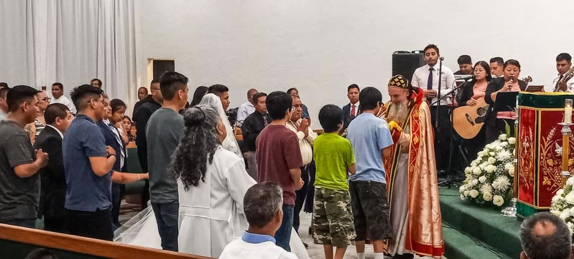 Finalmente, el arzobispo presidió la celebración de la divina liturgia, para los catequistas y otros fieles que estaban participando en la celebración parroquial.