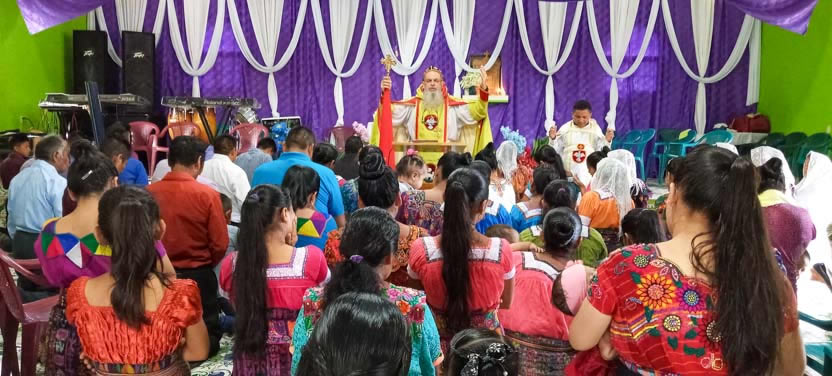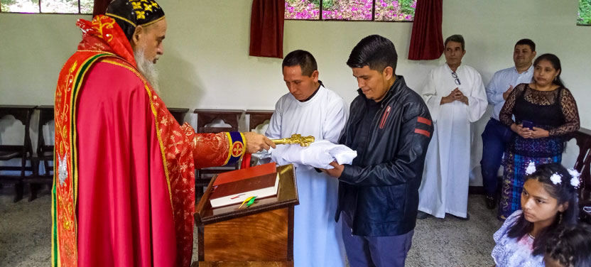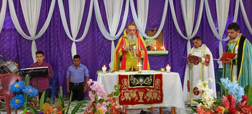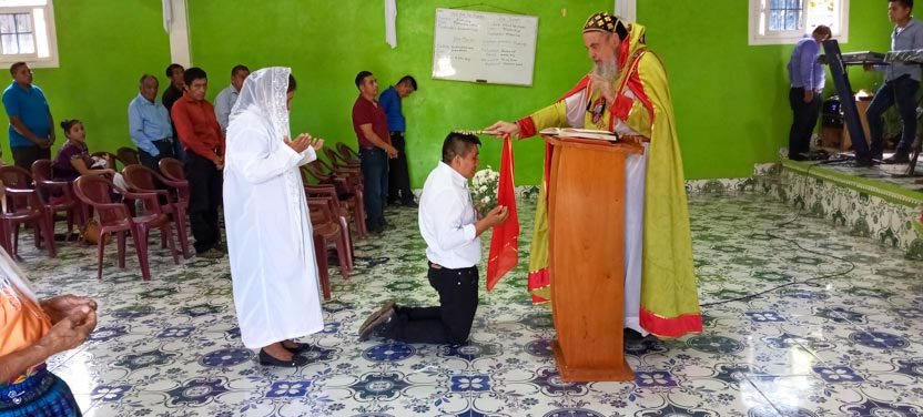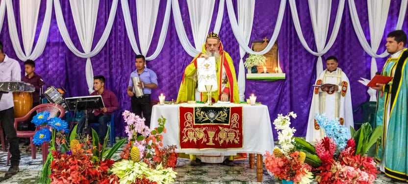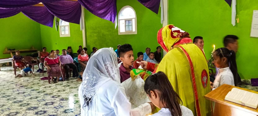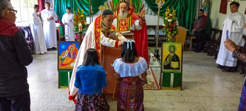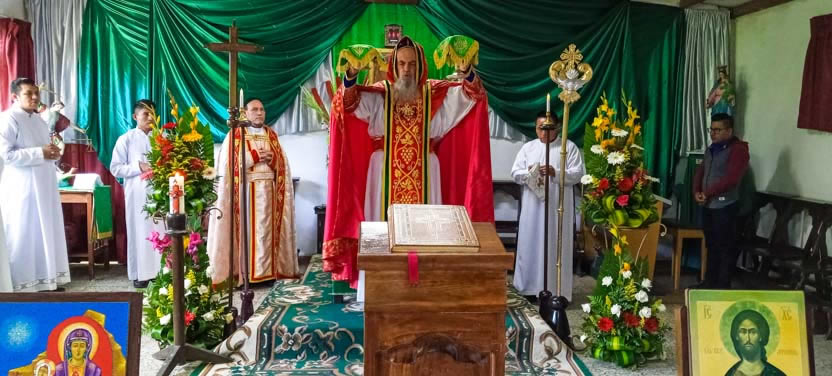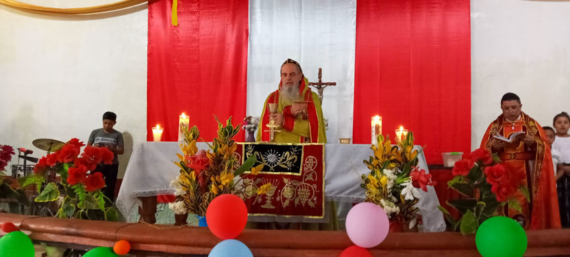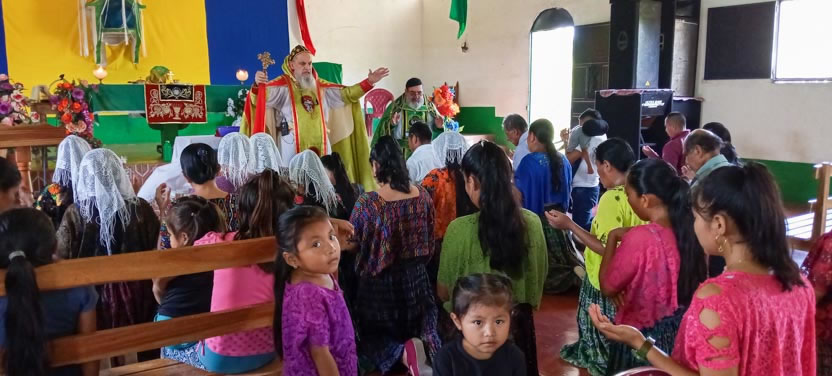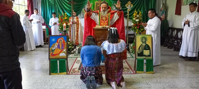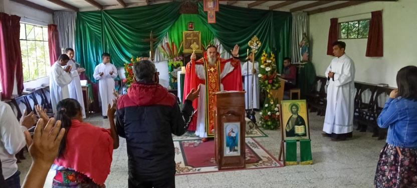 Finalmente, el arzobispo presidió la celebración de la divina liturgia con los hermanos de la sede parroquial de Yalicoc, Raxruhá. Concelebró el padre Juan Sebastián, párroco local.