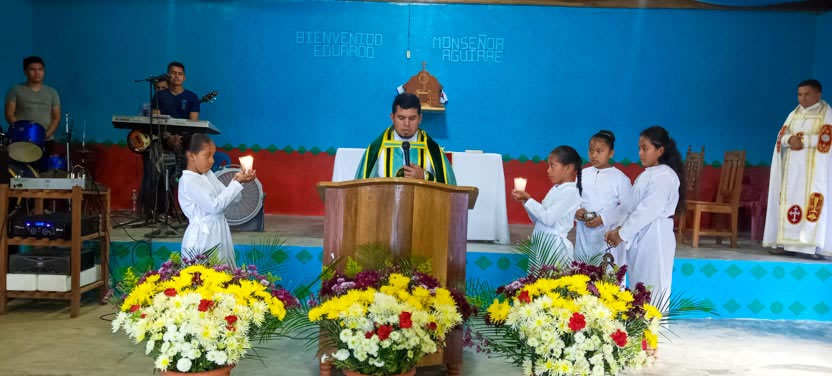 En la liturgia participaron también el Padre Luis y algunos de los seminaristas, que estaban para entonces en el Seminario. Esta comunidad se atiende desde el seminario y, por ello fue que se hizo la celebración allí. |