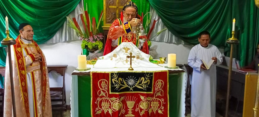 Finalmente, el arzobispo presidió la celebración de la divina liturgia con los hermanos de la comunidad de Sesuchaj. El padre Juan José Lucero concelebró con el arzobispo.