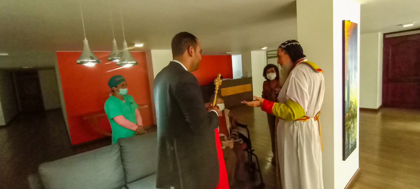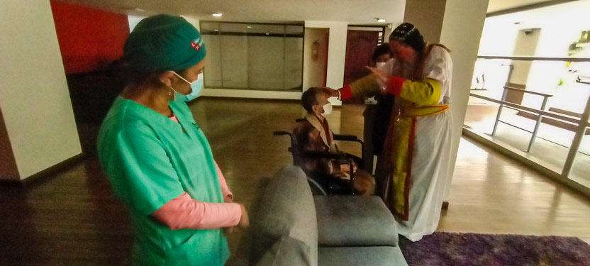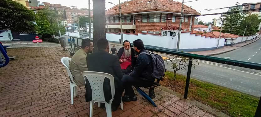 El mismo día 22, a mitad de la mañana, después de una caminata, pues ese día estaba prohibida la circulación de vehículos en Bogotá, se llegó hasta el lugar en el que el Padre Michael se reúne para celebrar la divina liturgia con los hermanos del Barrio María Cristina.