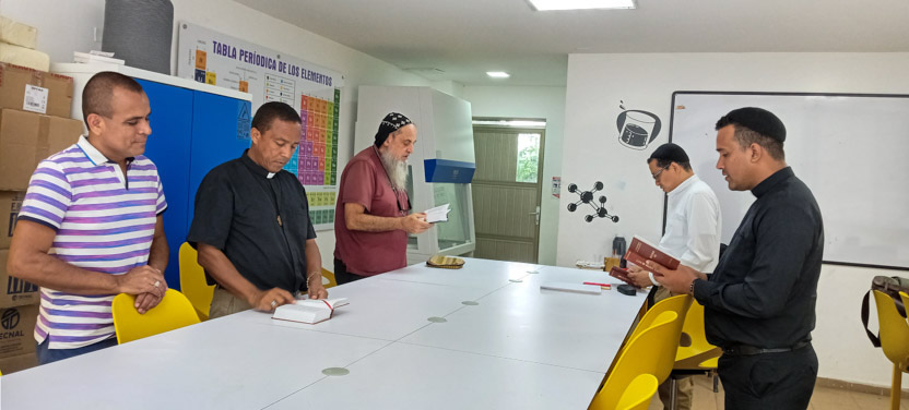 | 23: ORACIÓN DEL OFICIO DIVINO CON PRESBÍTEROS DE LA VICARÍA DE COLOMBIA, CARTAGENA DE INDIAS, COLOMBIA. |
