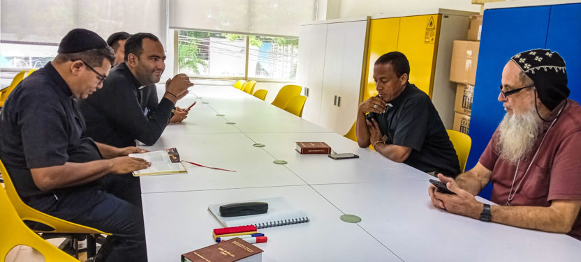 Después de la reunión con el pueblo de Dios, se tuvo una breve reunión con los padres Michael y Jesid, así como con el diácono Andrés Herrera, quienes ejercen pastoralmente en el área.