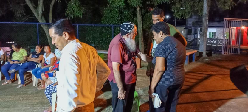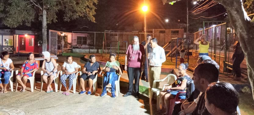 | Al caer del día, el arzobispo, junto a los demás presbíteros que estaban participando en el encuentro, llegaron hasta el parque de la comunidad de Turbaco, en donde, los fieles de la comunidad dieron una calurosa bienvenida al arzobispo. |