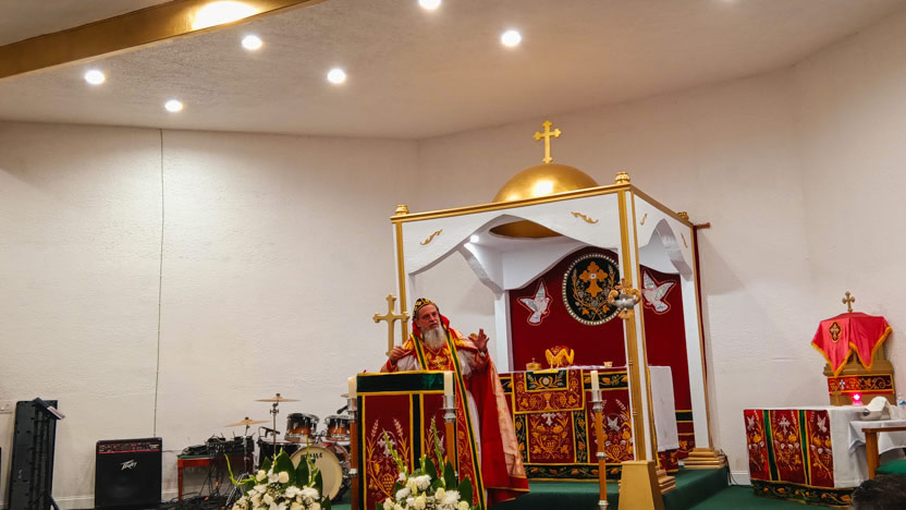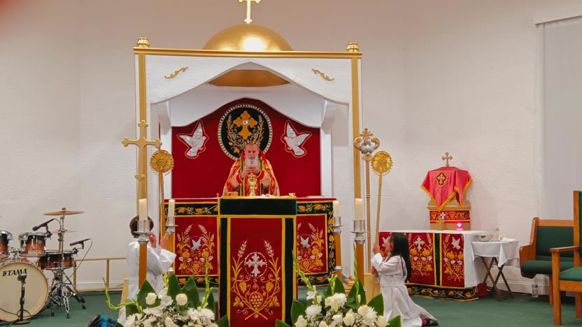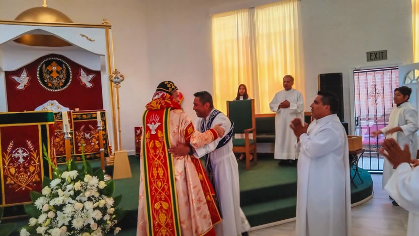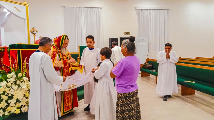 Antes de comenzar con la celebración de la divina liturgia, el arzobispo exhortó a los hermanos a intercambiarse el saludo de paz, como señal de la comunión que se vive.