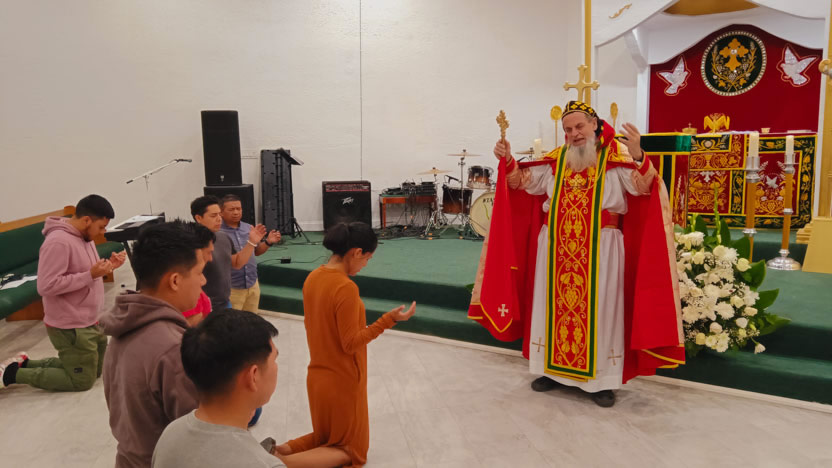 Después de invitar al arrepentimiento, los hermanos hicieron la confesión de sus pecados y, seguidamente, el arzobispo oró, implorando la efusión del Espíritu Santo. |
