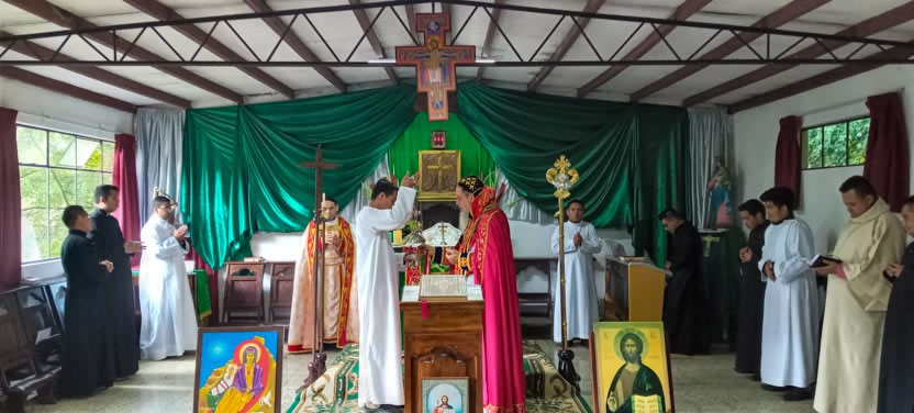 Dinalmente, el arzobispo presidió la celebración de la divina liturgia, como conclusión del ciclo académico 2022, del seminario Santa María del Nuevo Éxodo.