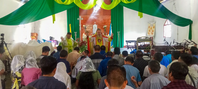 La visita pastoral a la comunidad de Chaculá, concluyó con la celebración de la divina liturgia, presidida por el arzobispo y concelebrada por el Padre Francisco Pastrana.