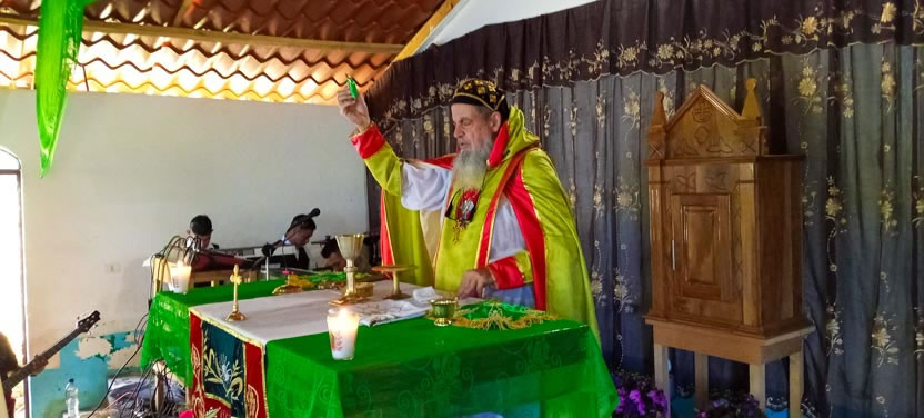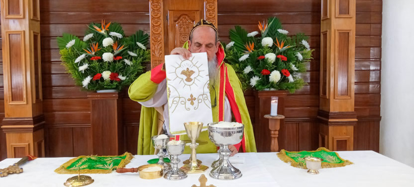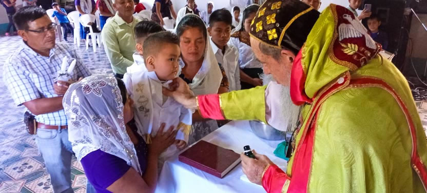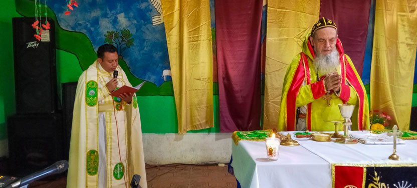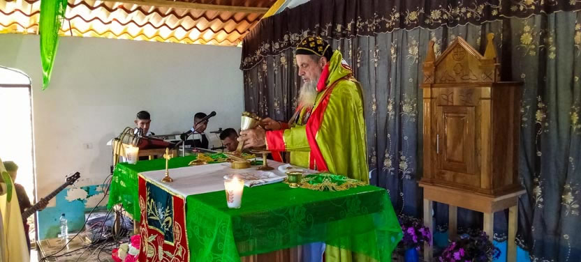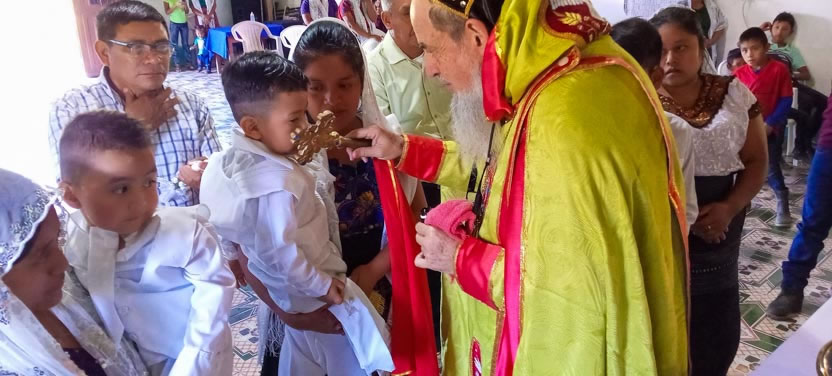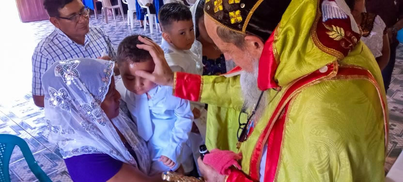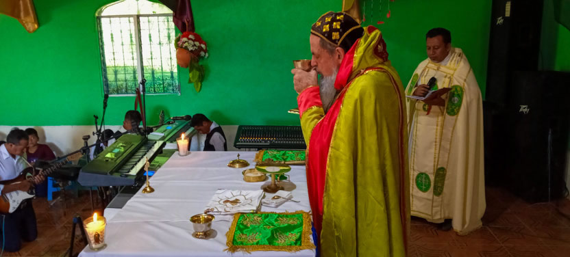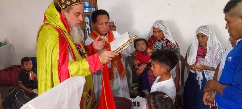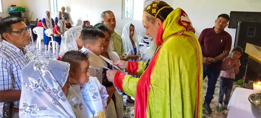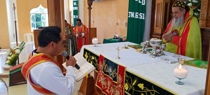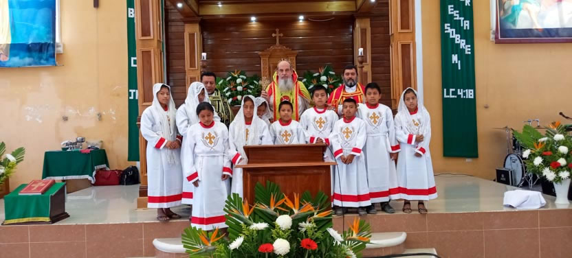 Poco después del medio día, el arzobispo concluyó la visita a la comunidad de Nueva América, con la celebración de la divina liturgia, concelebrada por el Padre Huego.