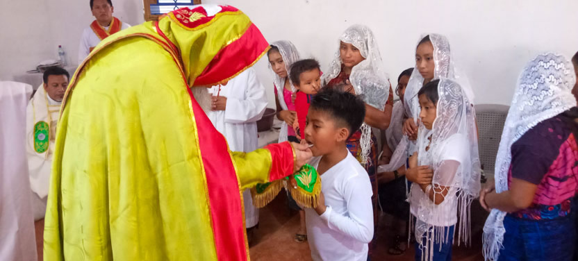 El sábado 29 de octubre, por la mañana, acompañado del padre Hugo Patzán, párroco local, el arzobispo llegó hasta la comunidad de Santa EulaliaLa Pimienta del municipio de Chajul.