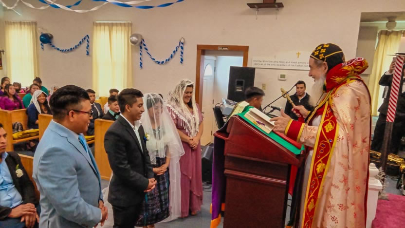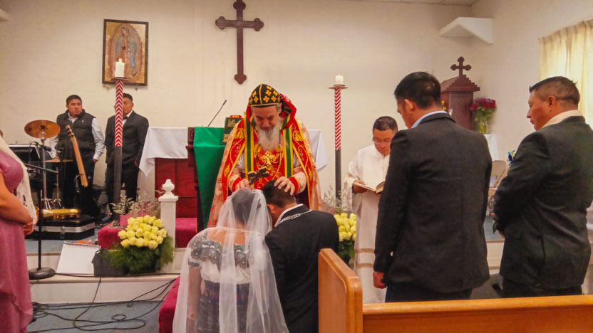 Dentro del marco de las celebraciones litúrgicas, un lugar muy destacado lo ocupó la celebración del matrimonio entre Juan Elías, originario de Agua Escondida, Cunén y de María Isabel, de Cecilia, Cunén.