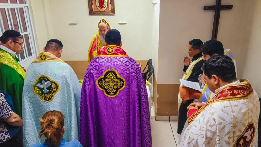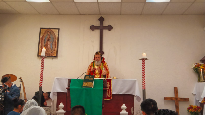La actividad en la comunidad de Zumpango culminó con la celebración de la divina liturgia. La misma fue presidida por el arzobispo y concelebrada por los seis presbíteros presentes.