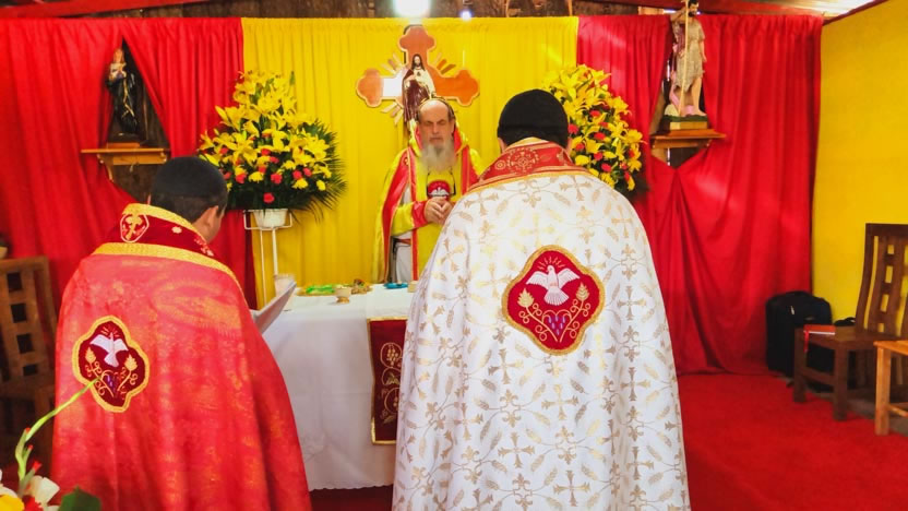 Seguidamente, se comenzó con la celebración de la divina liturgia, presidida por el arzobispo y concelebrada por los padres José Juan, encargado pastoral local y Wilber y Henry.