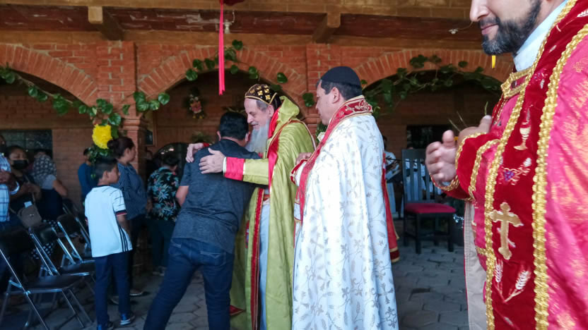 Antes de entrar en la celebración de la divina liturgia, el arzobispo invitó a los hermanos a intercambiar el saludo de la paz, de acuerdo a la tradición cultural local.