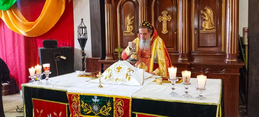 En esa conciencia se celebró la divina liturgia, la cual fue presidida por el arzobispo y concelebrada por los presbíteros que estaban participando en la liturgia. |