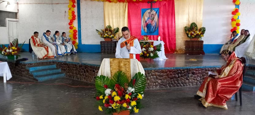 Concelebraron los padres Fredy López, José Alfredo Hernández, Gustavo, Pineda, Óscar Carranza y Alexander Mendoza y cantó el diácono Damián Romero. |