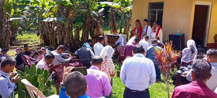 Hacia el mediodía, se comenzó con las celebraciones litúrgicas, en el área verde del Centro Misionero de Tomtem.