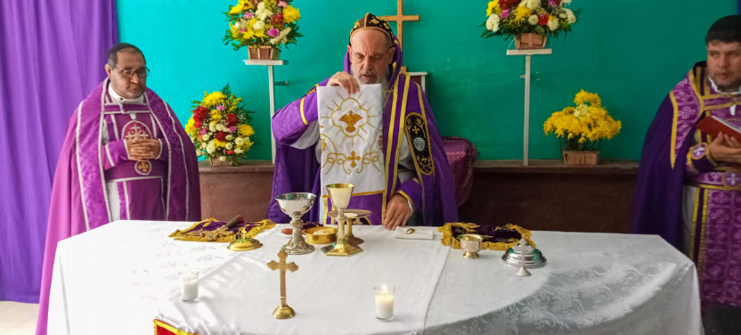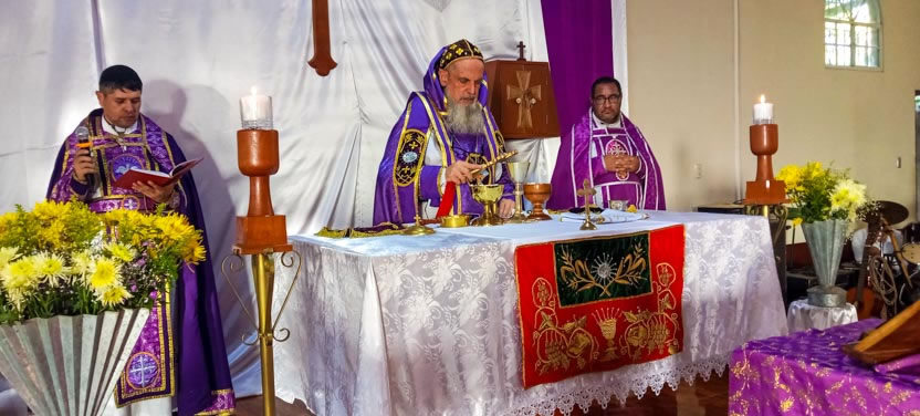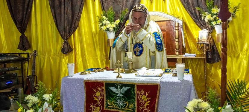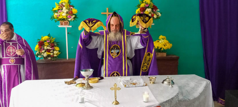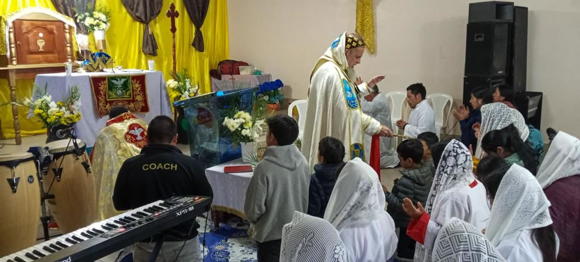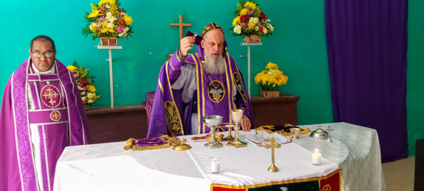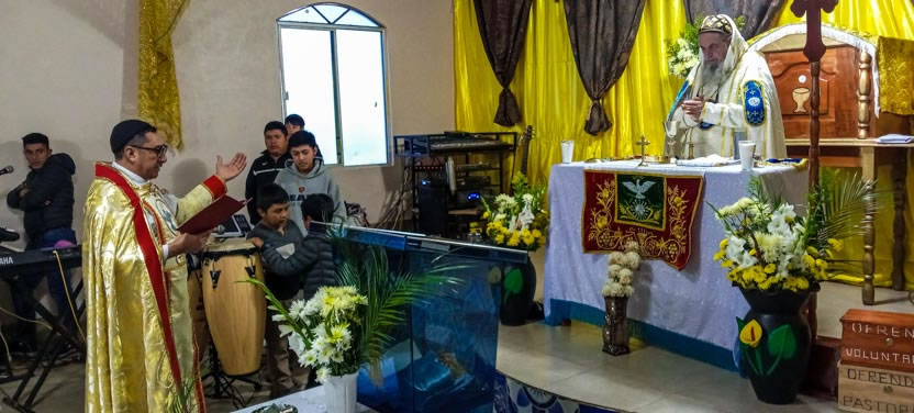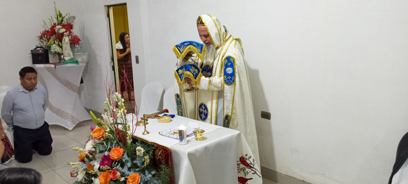La visita a Guaymando concluyó con la celebración de la divina liturgia, presidida por el arzobispo y concelebrada por los padres Edwin, párroco local y Ángel Cáseres, quien acompañaba al arzobispo.
