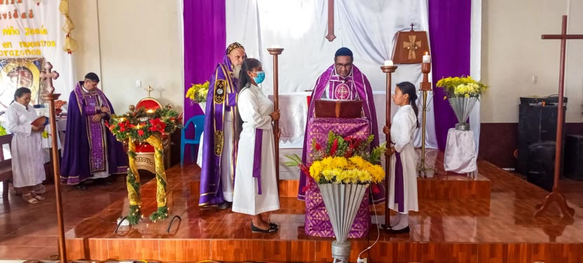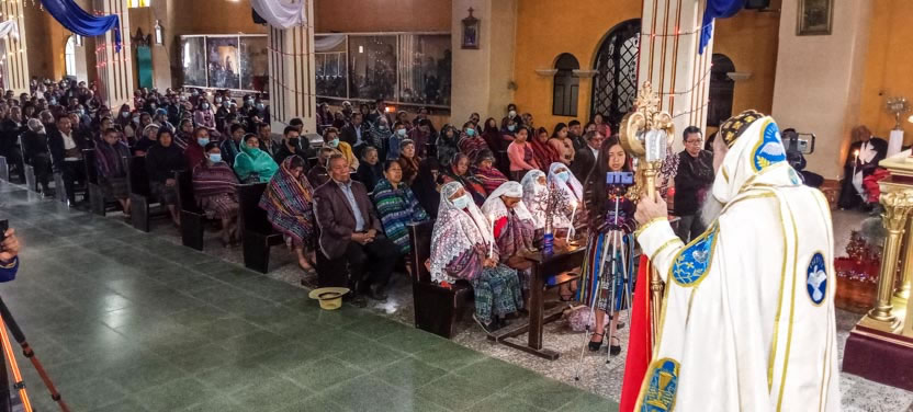 Finalmente, el arzobispo presidió la celebración de la divina liturgia, en la comunidad de Concepción Huista, Huehuetenango, en la cual concelebró el padre Santos Acosta, párroco local.