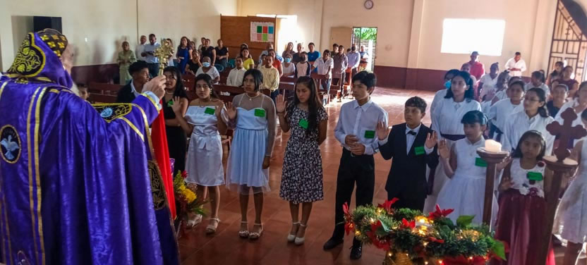 El Padre Edwin, párroco local, preparó a 17 hermanos para que fueran confirmados y recibieran el envío misionero, con la finalidad de que, más hermanos se involucren en la acción misionera.