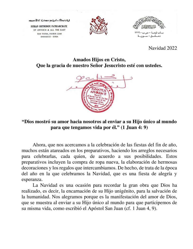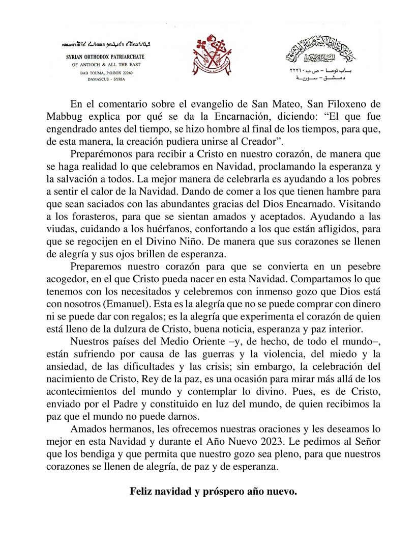 | 23: MENSAJE DE SU SANTIDAD EL PATRIARCA, IGNACIO EFRÉN II, CON OCASIÓN DE LA NAVIDAD. |